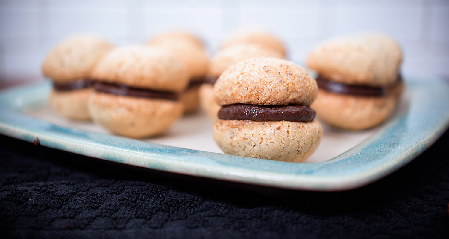 Bake the first batch until the cookies are shiny and rise 1/8 inch to form a "foot," about 20 minutes. Transfer to a rack to cool completely. Repeat, using a double sheet for each batch. Peel the cookies off the mats and sandwich with a thin layer of filling (see below).